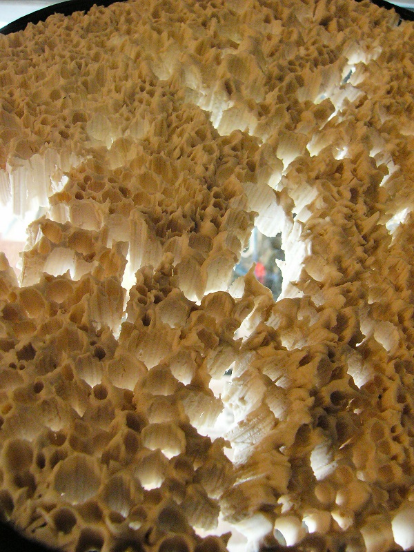 Elle prélève, ici la structure minuscule de la moelle, là, des extraits de concrétions coralliennes se situant aux frontières de la minéralité et de l’animalité.